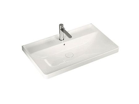 Раковина подвеснаявстраиваемая HATRIA CANALGRANDE Y1EK с одним отверстием под смеситель, с отверстием перелива, размер 80×50 см, белого цвета. Крепление в комплекте. Для подвесной установки или на тумбу.