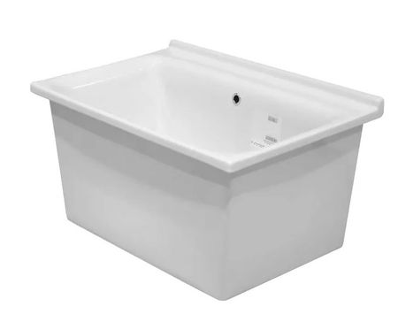 Раковина хозяйственная без отверстия для смесителя, (запчасть для комплекта для постирочной 9164), устанавливается на тумбу, без сифона, приобретается отдельно, цвет белый.