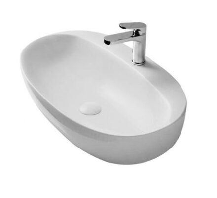 Azzurra Elegance Circle ECI70M bi*1 Раковина накладная, размер 70х42 см, без перелива, 1 отверстие под смеситель, цвет белый глянцевый. Дополнительно рекомендован выпускной клапан с белой керамической крышкой PILCE bi (в комплект поставки не входит).