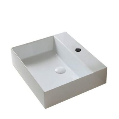 Azzurra Elegance Squared EQA60M bi*1 Раковина накладная, размер 60х45 см, без перелива, с одним отверстием под смеситель, цвет белый глянцевый. Дополнительно рекомендован выпускной клапан с белой керамической крышкой PILCE bi (в комплект поставки не входит).