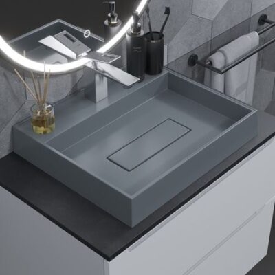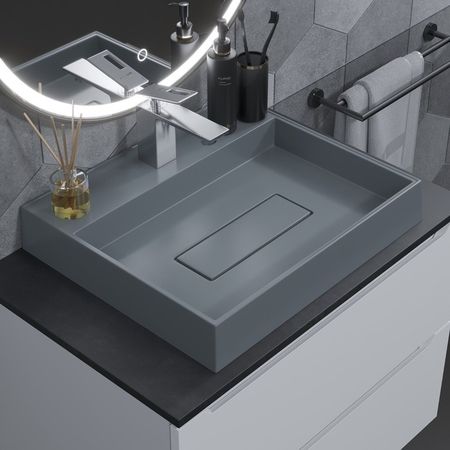 Раковина накладная кварцевая Uperwood Tanos Quartz 50 см, прямоугольная, бетон