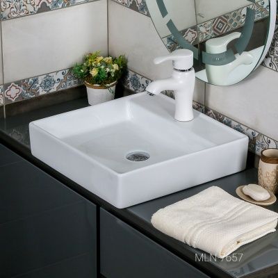 Накладная, подвесная, рукомойник. Крепится на стену, устанавливается на столешницу. Фаянсовая. Имеет 1 готовое отверстие под смеситель. Диаметр слива: 4.5 см