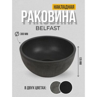Раковина накладная Uperwood Belfast круглая, бетон, графит