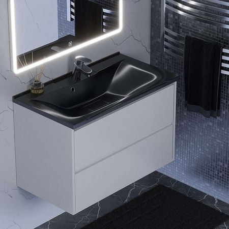 Раковина полувстраиваемая Uperwood Elen, 90 см, с декоративной крышкой, черный металл