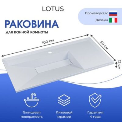 Раковина полувстраиваемая Uperwood Lotus 100 см, прямоугольная, белая глянцевая