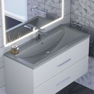 Раковина Uperwood Foster Quartz 100 см, кварцевая, серая матовая, бетон
