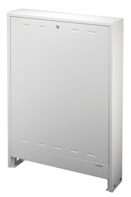 Распределительный шкаф Oventrop (Овентроп) для наружной установки, стандартное исполнение выполнен из качественной оцинкованной стали, преимуществом которой является невосприимчивость к деиствию коррозии. Модель легко устанавливается и обеспечивает защиту коллекторов систем отопления и водоснабжения.