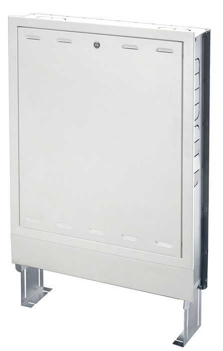 Распределительный шкаф Oventrop (Овентроп) встраиваемый шкаф, узкий, изменяемый по высоте и глубине применяется в инженерных систем жилых зданий, в которых используются водораспределительные коллекторы. Устройство отличается особой прочностью и устойчивостью к коррозии, так как выполнено из оцинкованной стали.
