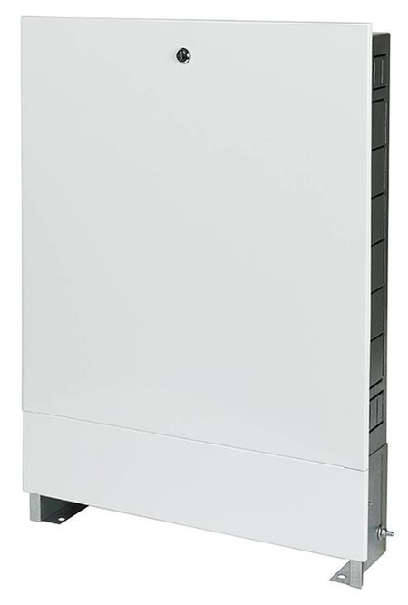 Распределительный шкаф VARMEGA (Вармега) VM35505 ШРВ-5 13-16 изготовлен в стальном корпусе с оцинковкой и белым эмалевым покрытием. Это гарантирует ему надежную защиту от механических повреждений и коррозии. Внутри можно установить коллекторы, насосно-смесительные узлы, а также приборы учета.