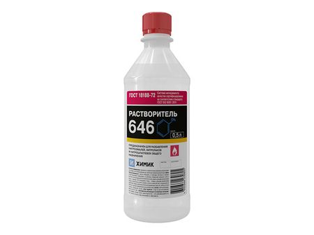 Главная » Строительство и ремонт растворитель 646 ХИМИК 0,5л, арт.66230805 Просмотров 14 646 Объем: 0,5 л Для разбавления ЛКМ Для очистки покрасочного инструмента Нет марки