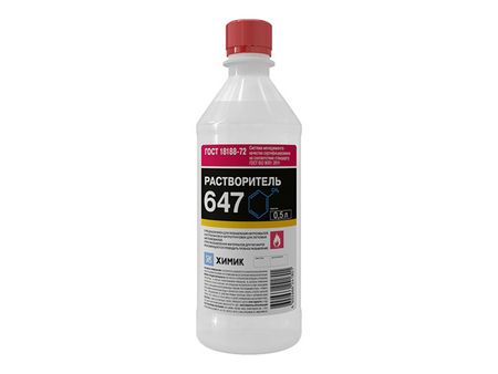 Главная » Строительство и ремонт растворитель 647 ХИМИК 0,5л, арт.66241801 Просмотров 12 647 Объем: 0,5 л Для разбавления нитроцеллюлозных эмалей и автомобильных эмалей НЦ Нет марки