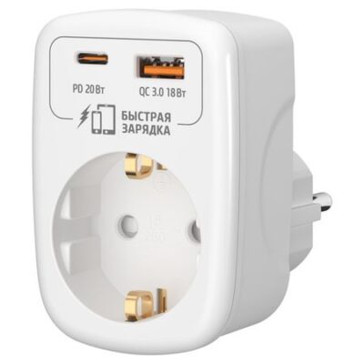 разветвитель-адаптер ФОТОН USB 16А с/з 16А быстрая зарядка белый