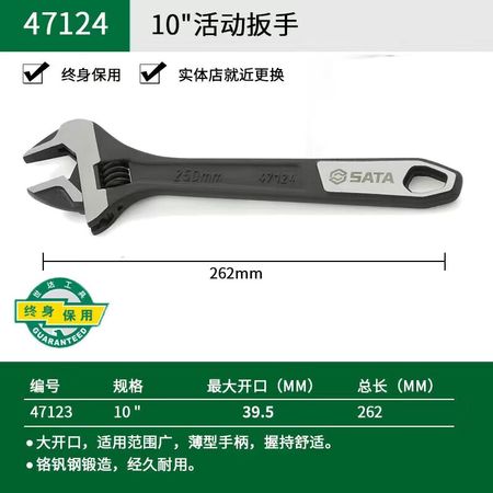Разводной ключ Star Разводной ключ со звездой, разводной ключ с большим отверстием, черная обработка, разводной ключ с большим отверстием, 10 дюймов 47124 SATA