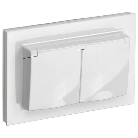 розетка 2 поста IEK BRITE с/з с/ш с крышкой 16А IP44 белый