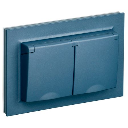 розетка 2 поста IEK BRITE с/з с/ш с крышкой 16А IP44 маренго
