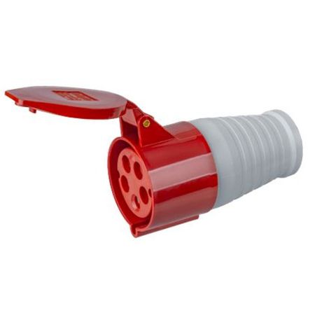 Вес брутто: 0.28 кг Номинальное напряжение: 380 В Номинальный ток: 32А Количество контактов: 5 Тип контактов: 3P+N+PE Степень защиты: IP44 Цвет: красный