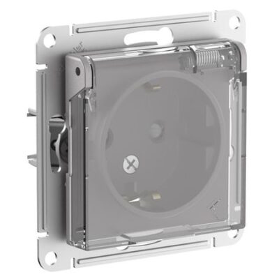 розетка SYSTEME ELECTRIC Atlas Design с/з с/ш с прозр.крышкой алюминий