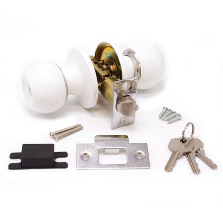 Тип двери: межкомнатная Цвет: белый Материал: сталь Форма накладки: круг Форма ручки: шарообразная Дизайн: современный Цветовая гамма: белая Ключ в комплекте: 3 шт.