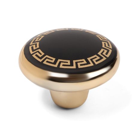 Ручка-кнопка CAPPIO, d=39 мм, цвет золото. Ручка-кнопка CAPPIO изготовлена в дизайнерском стиле из высокопрочного пластика. Интересный дизайн ручки сочетается с различными типами мебельного гарнитура. Фурнитура имеет привлекательный внешний вид и компактный размер. Золотой оттенок с вставкой из черного цвета идеально подходит к мебельным фасадам в различной цветовой гамме. Материал изделия обеспечивает длительный срок службы фурнитуры, эргономичная форма ручки способствует комфортному открыванию мебельных фасадов и ящиков. Мебельная ручка фиксируется к поверхности с помощью винта.
