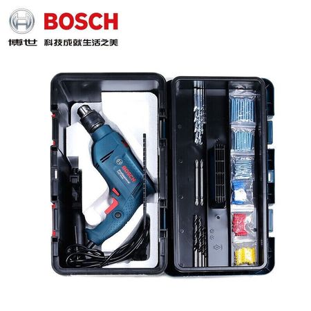Ручная электрическая дрель Bosch, ударная дрель, бытовая электрическая отвертка, ящик для инструментов, полный набор GSB550, отвертка с перфорацией вперед и назад
