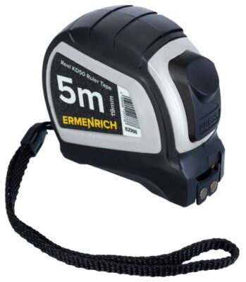 Ermenrich Reel KD50 строительная рулетка с полотном из матовой стали и магнитным зацепом. Разметка расположена с одной стороны ленты, максимальная длина измерений составляет 5 метров. Рулетка устойчива к повреждениям и истиранию покрытия, отлично подходит для решения множества базовых измерительных задач дома, на производстве, в профессиональной деятельности.Когда полотно рулетки выдвинуто, оно автоматически фиксируется. Для сворачивания ленты внутрь корпуса используется кнопка на корпусе. Пока кнопка нажата, полотно сворачивается, если кнопку отпустить, то лента снова зафиксируется.Корпус рулетки выполнен из прочного пластика и обрезинен. С тыльной стороны расположено поясное крепление.Особенности:Полотно длиной 5 метров выполнено из матовой сталиРазметка нанесена с одной стороныМеханизм автоблокировки полотно фиксируется в выбранном положенииМагнитный зацеп рулетку удобно присоединять к металлическим поверхностямОбрезиненный корпус из высокопрочного пластика долговечен и проченХарактеристики:Тип: мерная лентаЕдиницы измерения длины: см, ммКласс точности: IIТочность измерения: 2,3 мм на 10 мДлина мерной ленты, м: 5Ширина мерной ленты, мм: 19Толщина мерной ленты, мм: 0.13Материал полотна: матовая стальОсобенности мерной ленты: односторонняя, автоматическая блокировка, металлический зацеп с магнитомМатериал корпуса: высокопрочный ABS-пластикДополнительно: обрезиненная поверхность корпуса, поясное крепление