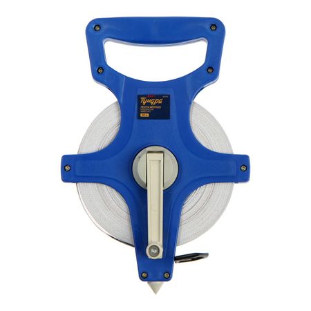 Рулетка геодезическая ТУНДРА, фиберглассовая лента, 50 м. Лента ТУНДРА – инструмент, который пригодится как в быту, так и в профессиональной деятельности. С помощью нее можно произвести точные замеры длины или расстояния между объектами во время строительных или ремонтных работ. Представляет собой гибкую длинную полоску с нанесенной шкалой измерения. Лента наматывается на небольшую ось, которая расположена внутри корпуса. Фиберглас имеет небольшой вес, что значительно упрощает использование инструмента.