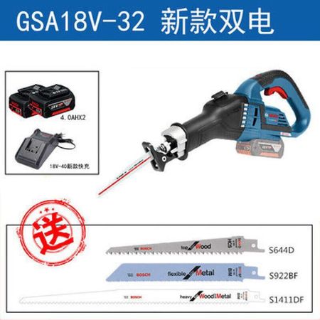 Сабельная пила Bosch GSA18V-32 + пильное полотно S644D/S922BF/S1411DF, два аккумулятора 4.0Ah, зарядное устройство