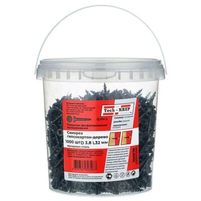 Главная » Строительство и ремонт саморез гипсокартон-дерево 3,8х32мм 1000шт Просмотров 13 Назначение: гипсокартон-дерево Диаметр: 3,8 Длина: 32 Головка: потайная Материал: Углеродистая сталь Покрытие: Фосфатированный TECH-KREP