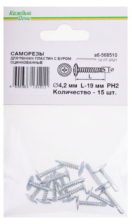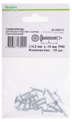 Саморез Каждый день для тонких пластин с буром 4,2×19, 15 шт