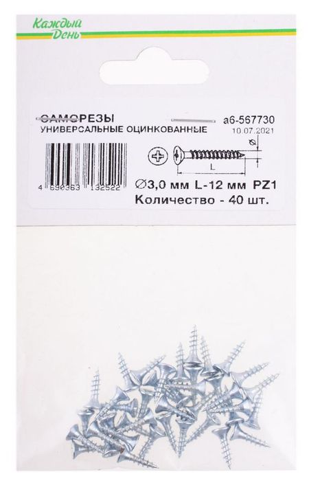 Саморез универсальный Каждый день 3×12 оцинкованный, 40 шт