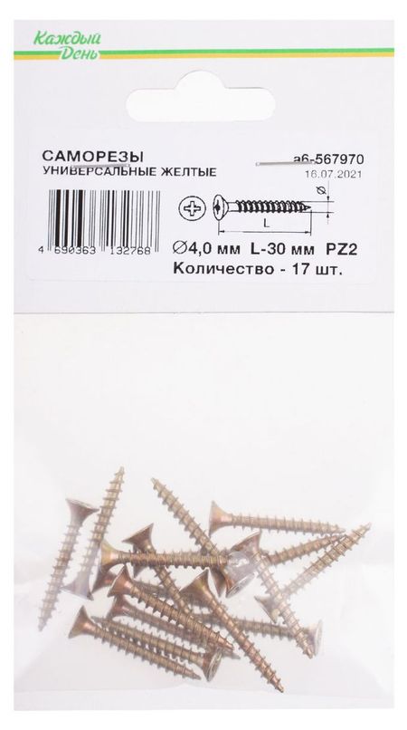 Саморез универсальный Каждый день 4×30 желтый оцинкованный, 17 шт