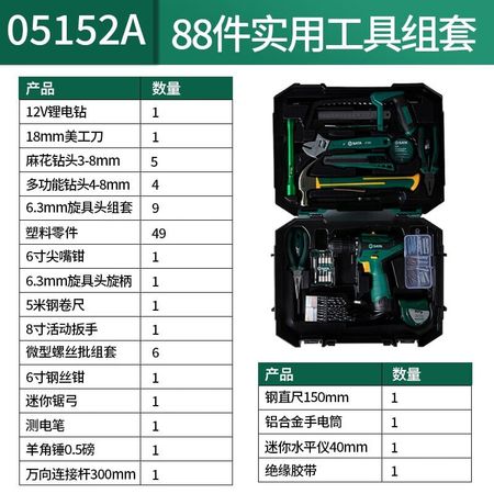 SATA 05152A бытовая фурнитура, набор инструментов из 88 предметов, набор инструментов для ремонта, перезаряжаемая электрическая дрель, литиевая электрическая ручная дрель (05152A), практичный набор инструментов из 88 предметов