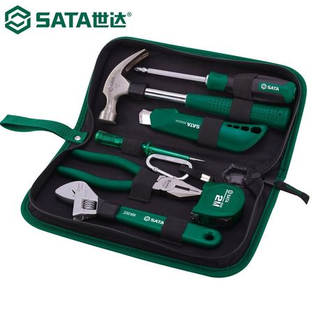 SATA 06001 набор инструментов, базовый набор инструментов для ремонта, сумка для инструментов бытового электрика, плоскогубцы, гаечный ключ, отвертка, молоток, комбинация, набор из 7 предметов