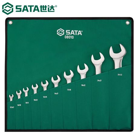SATA 08010 Набор двойных рожковых ключей, набор инструментов с открытым зевом, полностью полированная хромованадиевая сталь с высоким крутящим моментом, набор из 10 предметов, 5,5-14 мм