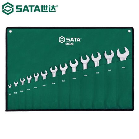 SATA 09029 Набор двойных ключей с открытым зевом, набор ключей с открытым зевом для цветка сливы, 13 предметов, полностью полированный, высокий крутящий момент, высокая твердость 6-32 мм