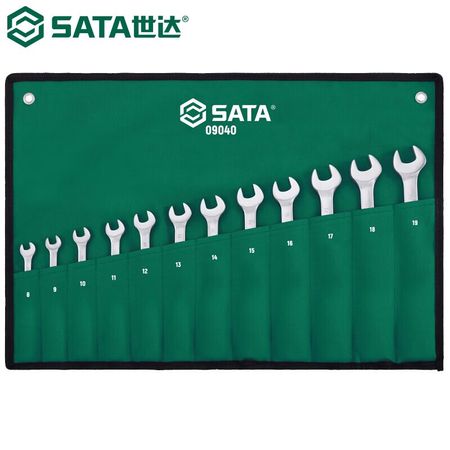 SATA 09040 Набор ключей с храповым механизмом с фиксированной головкой, сливовой открытый ключ, набор инструментов, сливовой открытый ключ двойного назначения, быстрый ключ из хромованадиевой стали, набор из 12 предметов, 8-19 мм