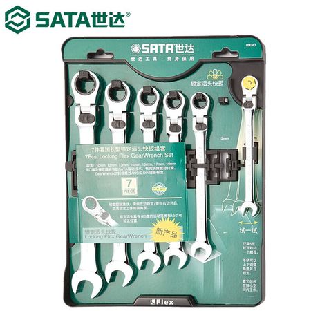 SATA 09043 набор импортных ключей, храповой механизм, фиксация подвижной головкой, сливовый открытый ключ, набор инструментов, открытый двойной ключ, быстрый ключ двойного назначения, набор из 7 предметов, хром-ванадиевая сталь, 10-19 мм