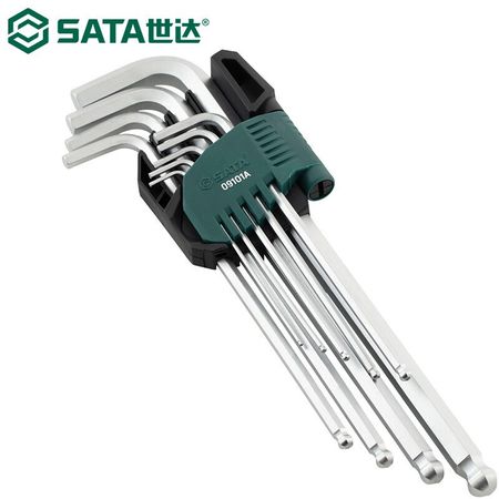 SATA 09101A Набор шестигранных ключей, удлиненный шестигранный ключ со сферической головкой, шестигранник из хромованадиевой стали, закаленная метрическая система, набор из 9 предметов 1,5–10 мм