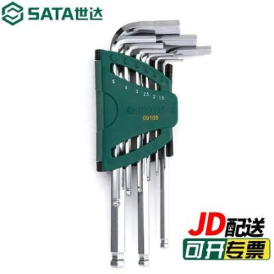 SATA 09105 Метрический шестигранный ключ с удлиненной шаровой головкой, шестигранная шестигранная отвертка L-образной формы, набор из 9 предметов