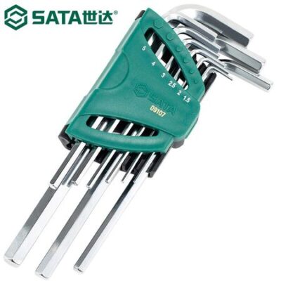 SATA 09107 Набор шестигранных ключей, удлиненный шестигранный ключ с плоской головкой, шестигранник из закаленной стали SVCM, закаленная метрическая система, набор из 9 предметов 1,5–10 мм