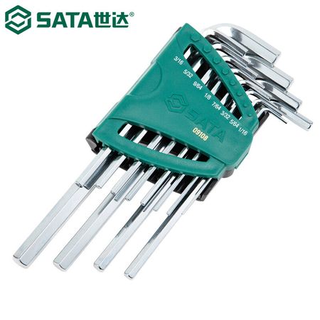 SATA 09108 Набор шестигранных ключей, дюймовая длина, шестигранный ключ с плоской головкой, шестигранник, легированная сталь S2, закаленная, набор из 12 предметов 1/16-3/8