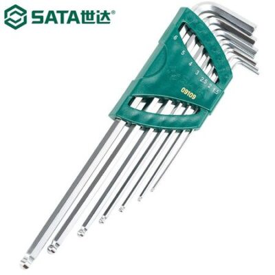 SATA 09109 Набор шестигранных ключей, удлиненный шестигранный ключ со сферической головкой, шестигранник из закаленной стали SVCM, закаленная метрическая система, набор из 7 предметов 1,5–6 мм