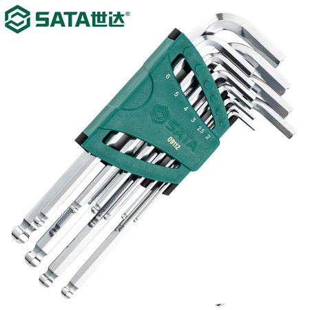 SATA 09112 Набор шестигранных ключей с удлиненной шаровой головкой, шестигранный ключ, легированная сталь SVCM, закаленная метрическая система, набор из 10 предметов 2–10 мм