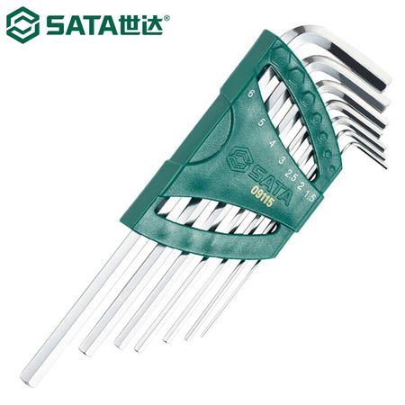 SATA 09115 Набор шестигранных ключей, удлиненный шестигранный ключ с плоской головкой, шестигранный, из закаленной стали SVCM, из закаленной стали, метрический, набор из 7 предметов 1,5–6 мм