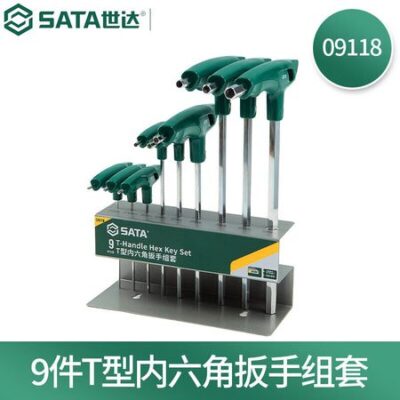 SATA 09118 Набор из 9 шестигранных ключей Т-образного типа, легированная сталь SVCM, закаленная метрическая система, набор из 9 предметов