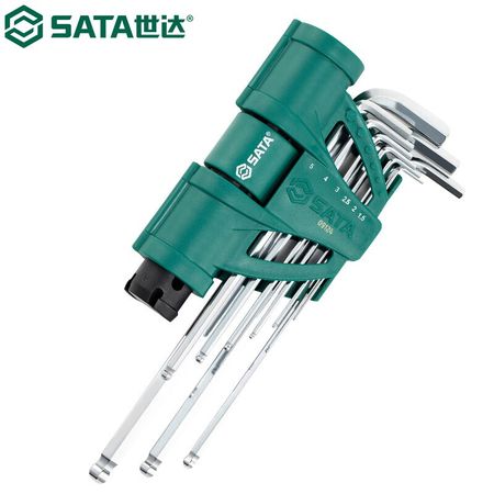 SATA 09124 Набор шестигранных ключей, удлиненная шаровая головка, повышенное усилие, шестигранный ключ, легированная сталь SVCM, закаленная метрическая система, набор из 9 предметов 1,5–10 мм