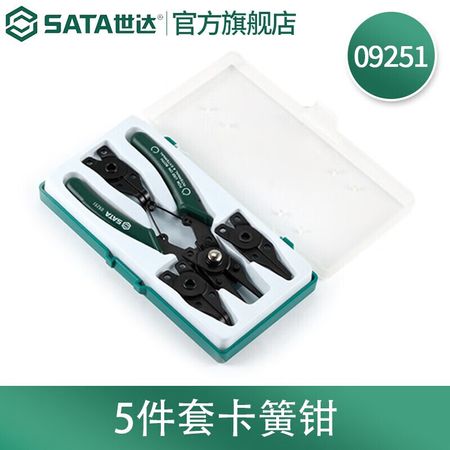 SATA 09251 Набор из 5 многофункциональных съемников внутренних и наружных стопорных колец с прямой и изогнутой губкой для валов с отверстиями и сменными головками.