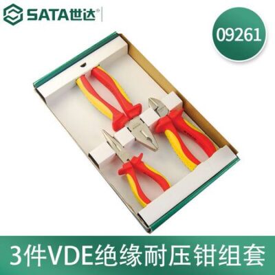 SATA 09261 Набор из 3-х изолированных по стандарту VDE клещей, устойчивых к давлению, кусачки, острогубцы, набор диагональных плоскогубцев