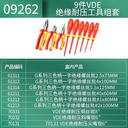 SATA 09262 Набор инструментов VDE из 9 предметов, изолированный, устойчивый к напряжению набор инструментов