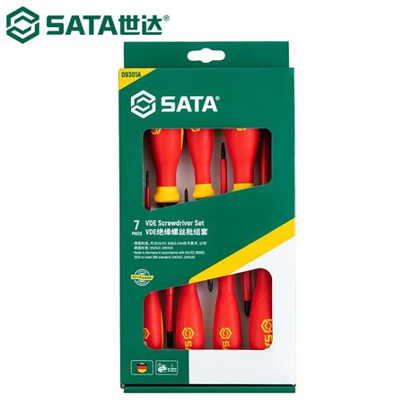 SATA 09301A Набор изолированных высоковольтных отверток VDE1000V Набор крестообразных отверток Набор отверток из хром-ванадий-молибденовой стали, набор из 7 предметов